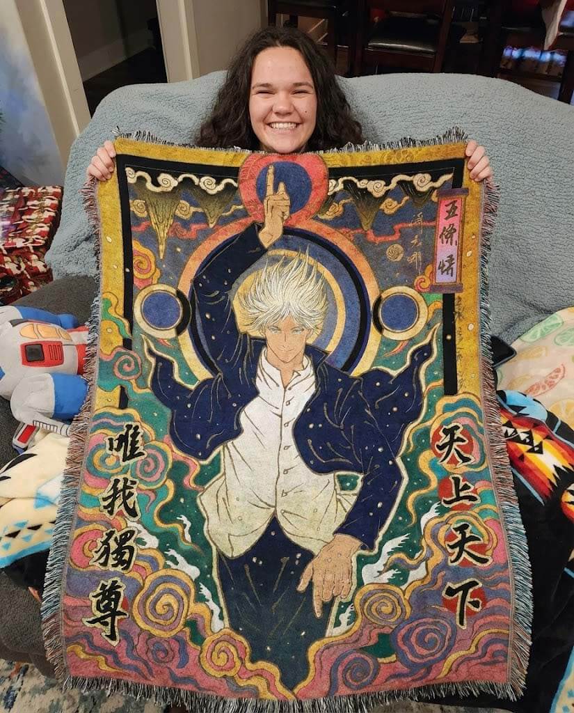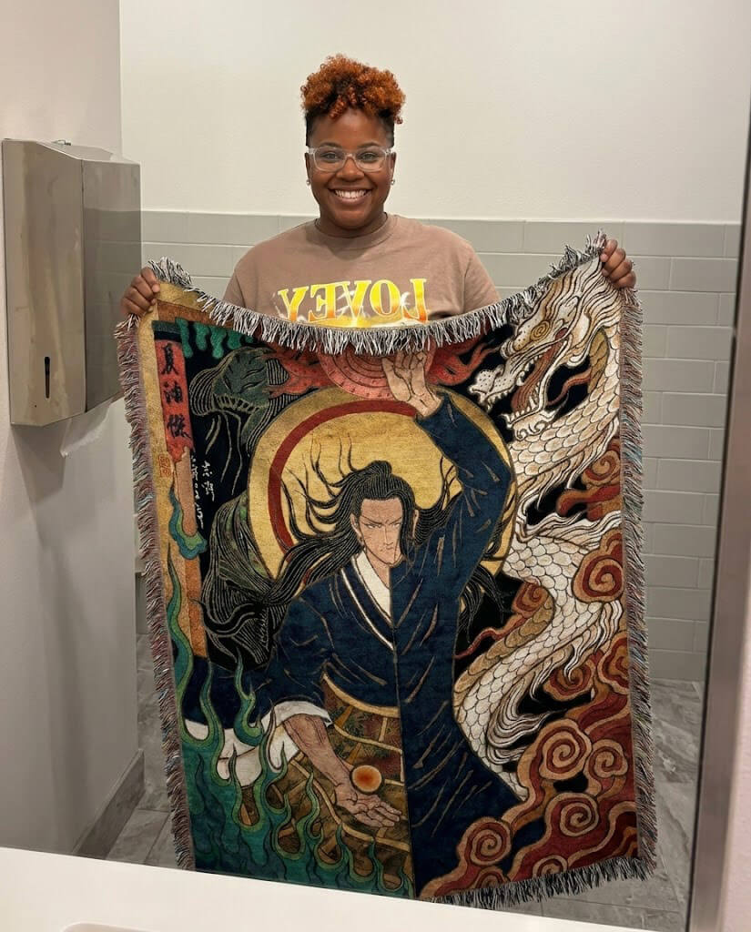 To take my art further and truly bring it to life, I began weaving it into blankets you can actually use and live with.